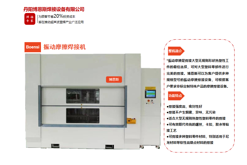 丹陽(yáng)博恩斯焊接設(shè)備有限公司是塑料焊接領(lǐng)域集研發(fā)設(shè)計(jì)、生產(chǎn)制造、銷售服務(wù)為一體的企業(yè)。公司自成立以來堅(jiān)持“以人為本”的理念,組織了一支強(qiáng)大的技術(shù)研發(fā)團(tuán)隊(duì),攜多年來積累的豐富經(jīng)驗(yàn),并結(jié)合國(guó)際先進(jìn)塑料焊接技術(shù),根據(jù)市場(chǎng)需要,不斷開發(fā)具有核心競(jìng)爭(zhēng)力的新產(chǎn)品。公司具有很強(qiáng)的非標(biāo)機(jī)械研發(fā)、設(shè)計(jì)、生產(chǎn)能力,可為廣大客戶定制各類專用機(jī)械設(shè)備。公司設(shè)計(jì)生產(chǎn)的塑料焊接設(shè)備已廣泛應(yīng)用于汽車、電子、家電、醫(yī)療器械、無紡布...